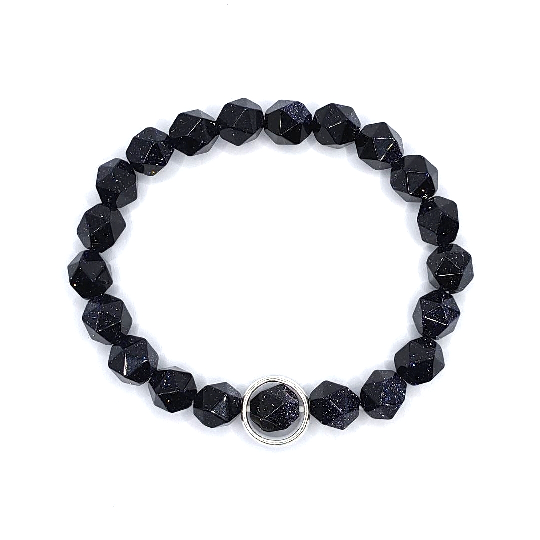 Blue Goldstone is a stone of victory and ambition. It’s deep midnight blue color and copper flecks resonates with a dark blue night sky studded with stars. It encourages a positive attitude, builds confidence, and initiates courage to the wearer.