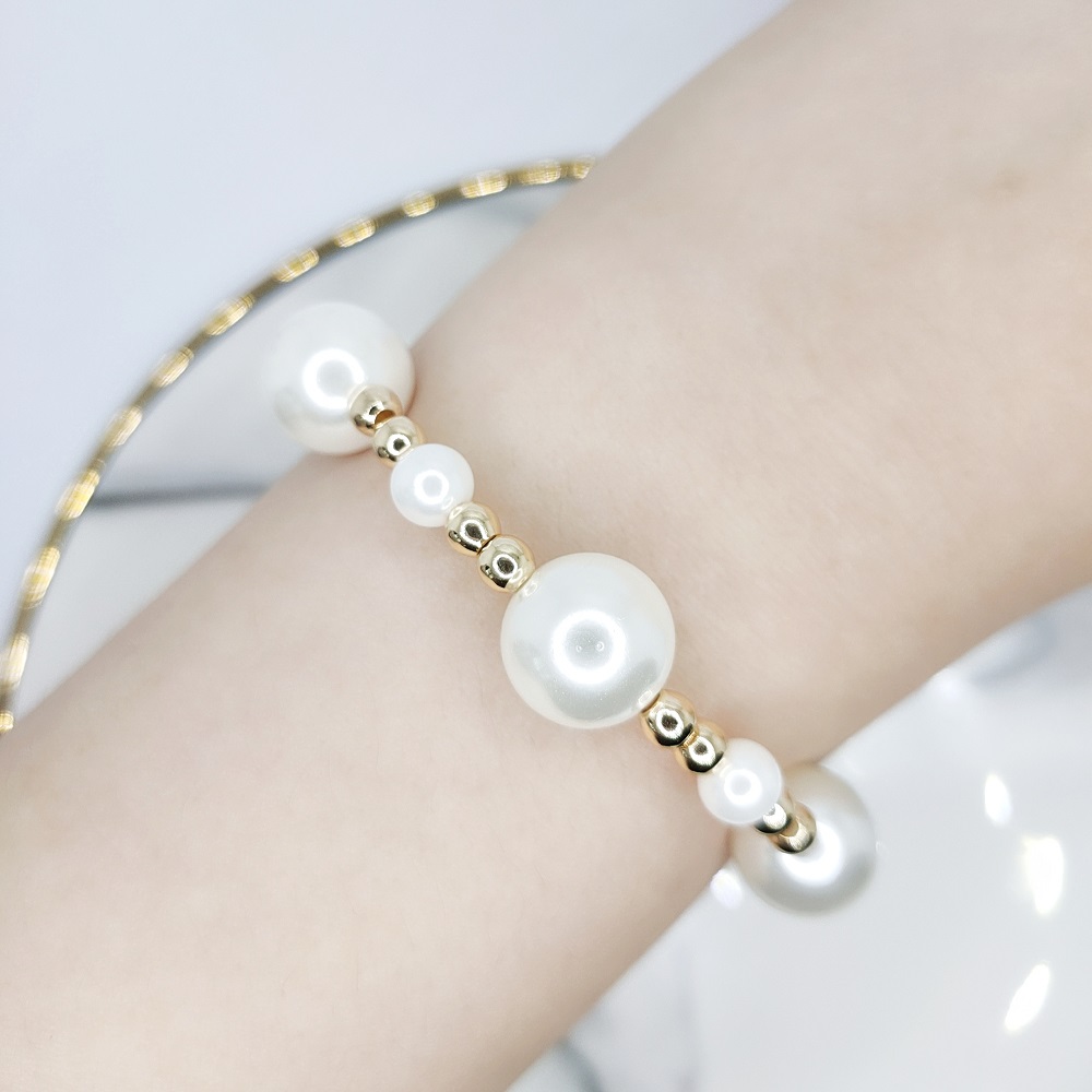Designed with clam pearls, this white bracelet symbolizes purity and innocence. A stunning piece ideal for brides.